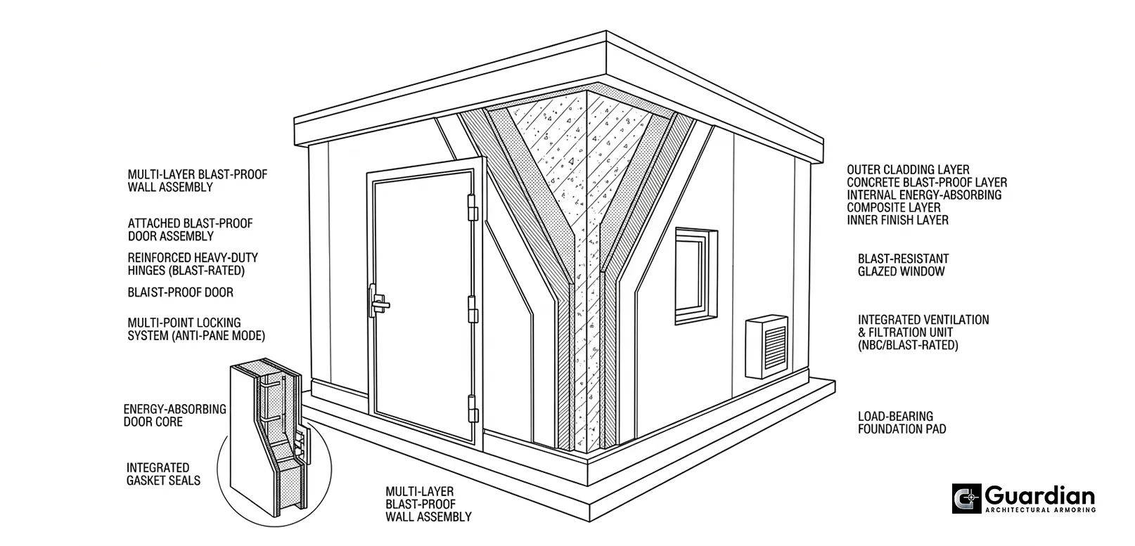 Choosing Guardian Walls means choosing reliability, innovation, and certified protection. ✔ UAE-based manufacturing expertise, ✔ Compliance with international standards, ✔ Custom-built solutions for each project, ✔ Integration with bullet resistant doors & systems, ✔ Global supply & installation support
